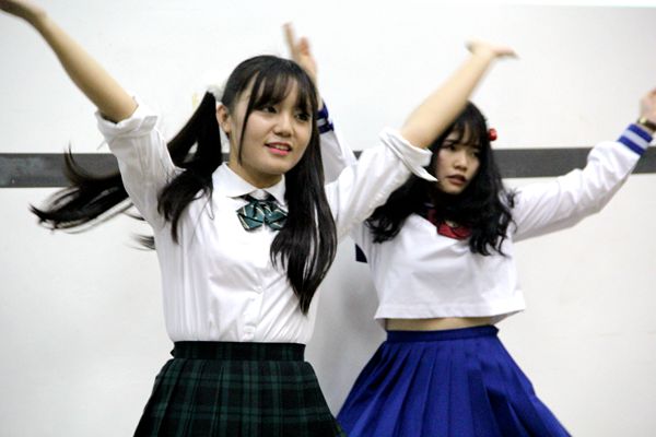“萌萌哒”妖怪体操开场舞打头阵,大会正式拉开帷幕。灯熄,一段别出心裁的幻灯片为大家展示了日语俱乐部从招新到成立以来的难忘历程,让在场的成员们对社团有了更深的了解;灯亮,英语师范二班谭泽英子以及作为嘉宾受邀的艺术学院张有平上台倾情演唱,清新与霸气兼具,气声假唱转换自如,电吉他演奏更让观众们大呼“明星范”,随后的歌曲串烧还糅合粤语、英语、日语等多种语言,向观众充分展示了日俱“包容、学习、发展”的社团理念。载歌载舞方为青春,身着水手服、扎双马尾的可爱少女们献上甜美群舞,现场洋溢着温馨的欢快气氛;节奏分明的双人现代舞动作酷炫,更有轮舞社脚踩轮滑,身随乐动,赢得现场阵阵掌声。