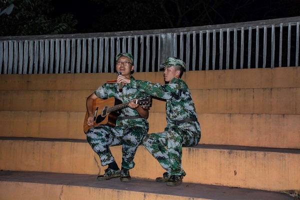 如果说训练的时光是一碗苦涩的中药,那么休息时间便是夏日里酸甜的橘子汽水。“休息一刻钟。”三声哨响后的这句命令大概是同学们心目中最动听的声音了。休息期间,才艺展示、游戏互动、接力比赛等新颖的小活动将训练场上的人儿们的心拉近,拉紧,欢声笑语把站军姿时的疲累一扫而空。中秋的月光下,学院师生齐聚一堂,歌声与欢笑声将浓浓的思念化解;合唱比赛和军训慰问演出更是盛况空前的视听盛宴,为军训增添了靓丽多彩的一笔。正如19级土木8班新生在军训感想中写到的:“军歌既有优美的旋律,也有豪迈的气势。它加强了我们的爱国情怀,使我永远忘记不了这次军训。” 19级工力1班徐炜翔同学也感叹道:“感谢军训给我带来了汗水与欢乐,艰辛与成长,军训生活一定会是大学美好时光中最美丽的一个篇章。”