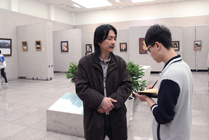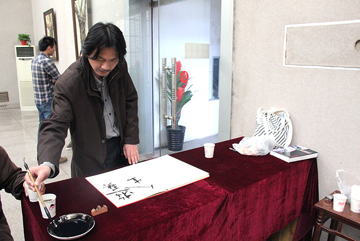 本次油画展涉猎风景,人物,生活,创作等方面,范围广泛,让观赏者们眼前一亮,是一次不可多得的视觉盛宴。画展期间采访到艺术学院院长李毅松,李院长说道,本次油画展的成功举办,足以见得彭浩同学的勤奋与认真,这是值得我们所有同学所学习的,其所提及的题材优秀,表现形式丰富,视觉语言的展现,基础功的踏实,对于彭浩本身是一次极大的突破。即兴,点墨挥笔,为彭浩同学题“艺术人生”四字,并送上真挚祝福。黄元甫,陈志翔,文牧江教授也纷纷提笔,题字赠言,展厅内一时热情高涨,掌声雷动。