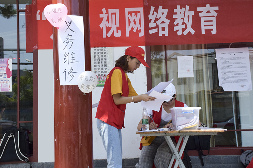 除此之外,志愿者对社区周围居民进行了二次关于网络的宣传,说明网络教育知识,并开展义务维修活动,义务服务分为两种,上门维修以及到维修站点维修。志愿者们用专业知识为居民们解决了许多问题,得到了居民们的高度赞扬和鼓励。