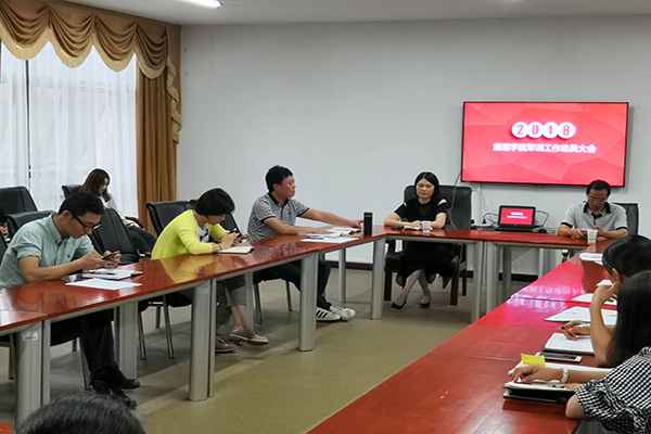 26日下午四时,潇湘学院于综合楼211会议室召开2018年新生军训工作动员大会。潇湘学院党委书记周光明,潇湘学院院长禹旭才参加了此次会议。此次会议由潇湘学院党委副书记曾练武主持,所有新生辅导员和负责军训各项工作的学生干部都参与了会议。