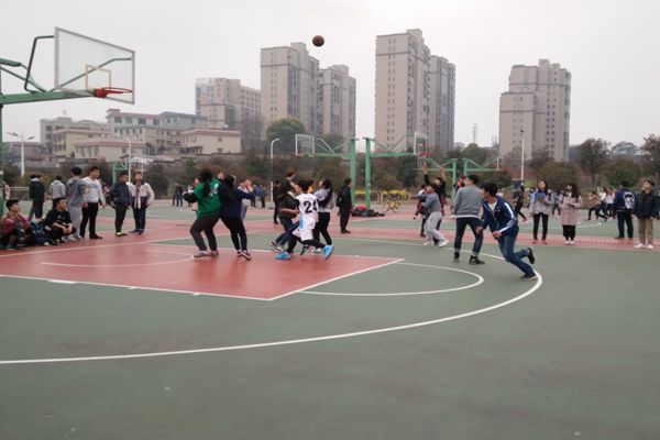 今天是比赛第一天,还没开始时篮球场就已经有很多人在等着精彩的比赛。比赛开始,到场的人都很激动,球场边站满了来加油的观众,各拉拉队的口号和加油声交杂着。果然,没有辜负观众朋友们的等候,球员们在场上奔跑着,默契配合,有着各种霸气的上篮,有着划出优美弧线的投篮,时不时赢得观众的喝彩和掌声,更精彩的是各部长上场时的风彩,部长们及女生上场时更是得到了全场的欢呼。