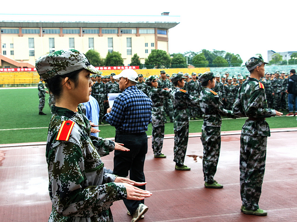 上午九点,据我院接受军容风纪检查的时间越来越近,场地上,教官们正针对自己排的军容风纪进行严格的内部检查,一旁的助班和学生干部们也根据新生需要进行协助。