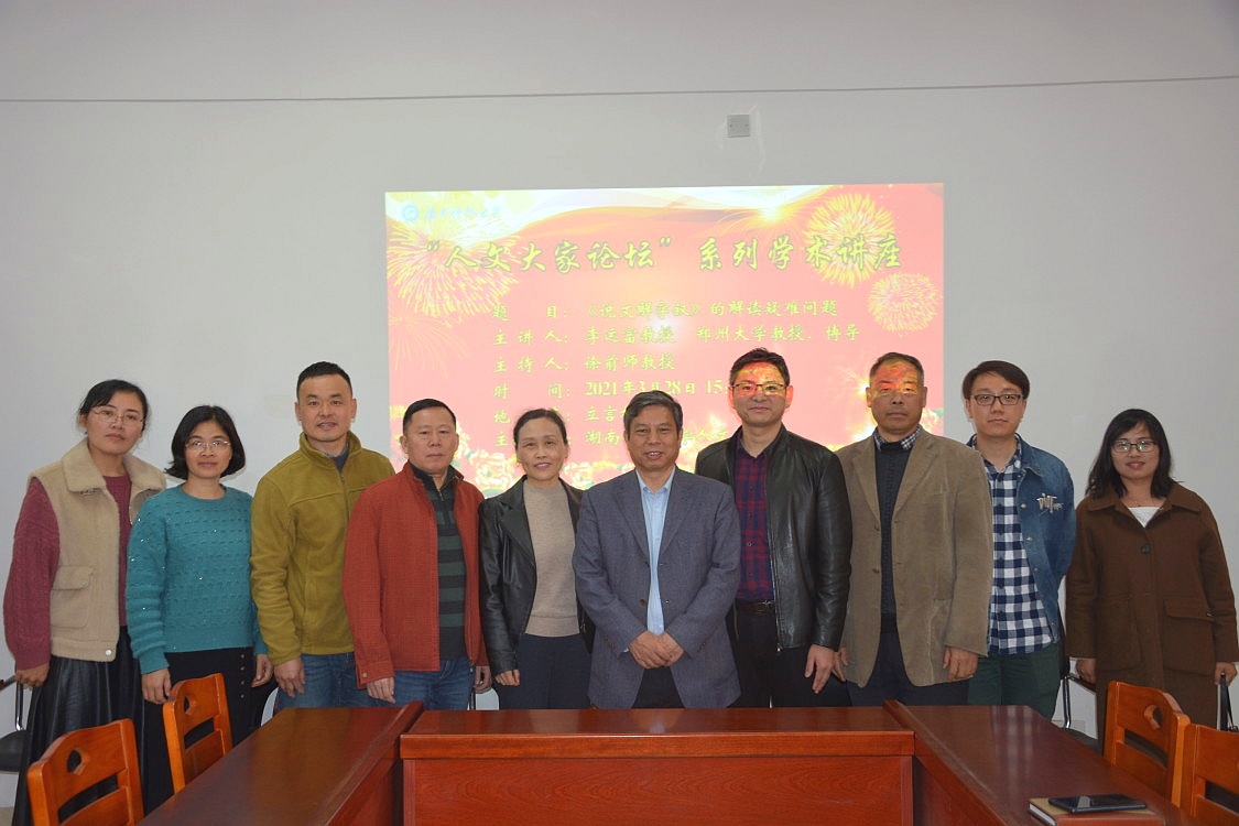 3月28号下午,人文学院于立言楼B411室举行“人文大家讲坛”系列学术讲座第212讲,郑州大学文学院院长、博士生导师、教育部“长江学者”李运富教授莅临人文学院作关于“《说文解字叙》的解读疑难问题”学术报告。人文学院徐前师教授主持讲座,湘潭大学文学与新闻学院雷励教授、人文学院丁志丛等老师以及汉语言文字学专业研究生到场听讲。