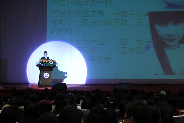 “人生那么短,我们就应该要有一颗与世界赛跑的心,打造更美的自己。要做就做到最好。”14思政一班的阙桃娣跟大家分享了自己的人生格言。来自14级汉语言文学三班的王易新,除了积极参加了志愿团、辩论队、校卫队,党建部外,还荣获多项国家级、校级文学作品竞赛大奖,用行动告诉我们——大学里,不断的努力使我们遇见更好的自己。
