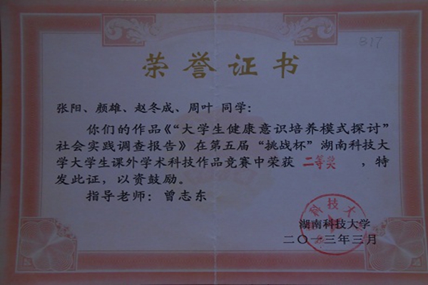 学习之余,她带领团队参加第五届湖南科技大学“挑战杯”大赛,以一篇“大学生健康意识培养模式探讨”社会调查实践报告获得二等奖的好成绩。“因为自己患病,所以对健康方面有着特殊的关注,因此激发了我做这方面的报告,希望能够帮助到更多的人。”