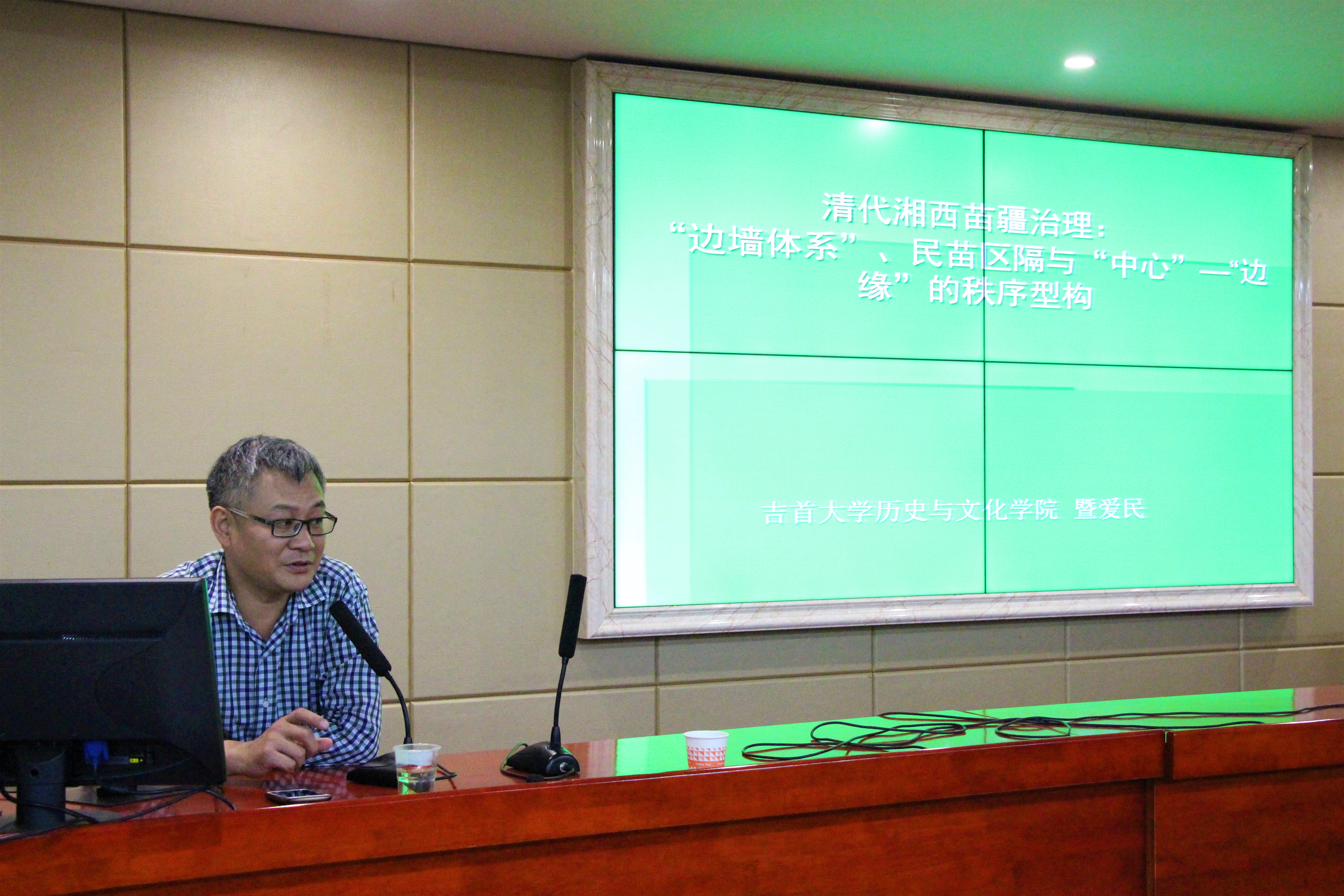 6月13日晚,“人文大家论坛”系列学术讲座第193讲在立言楼B4-1顺利举行。吉首大学历史与文化学院教授暨爱民应邀来人文学院作《清代湘西苗疆治理:“边墙体系”、民苗区隔与“中心”-“边缘”的秩序型构》的学术讲座。讲座由徐红教授主持,人文学院副院长欧阳萍、周方高教授、廖君湘教授以及17、18级历史系全体同学和研究生到场聆听。
