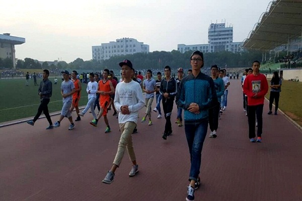 10月22日6:40,清晨第一缕阳光刚洒向大地,体育学院15级新生就早早地来到田径场,参加彩旗队和花球队的第一次集中特训。