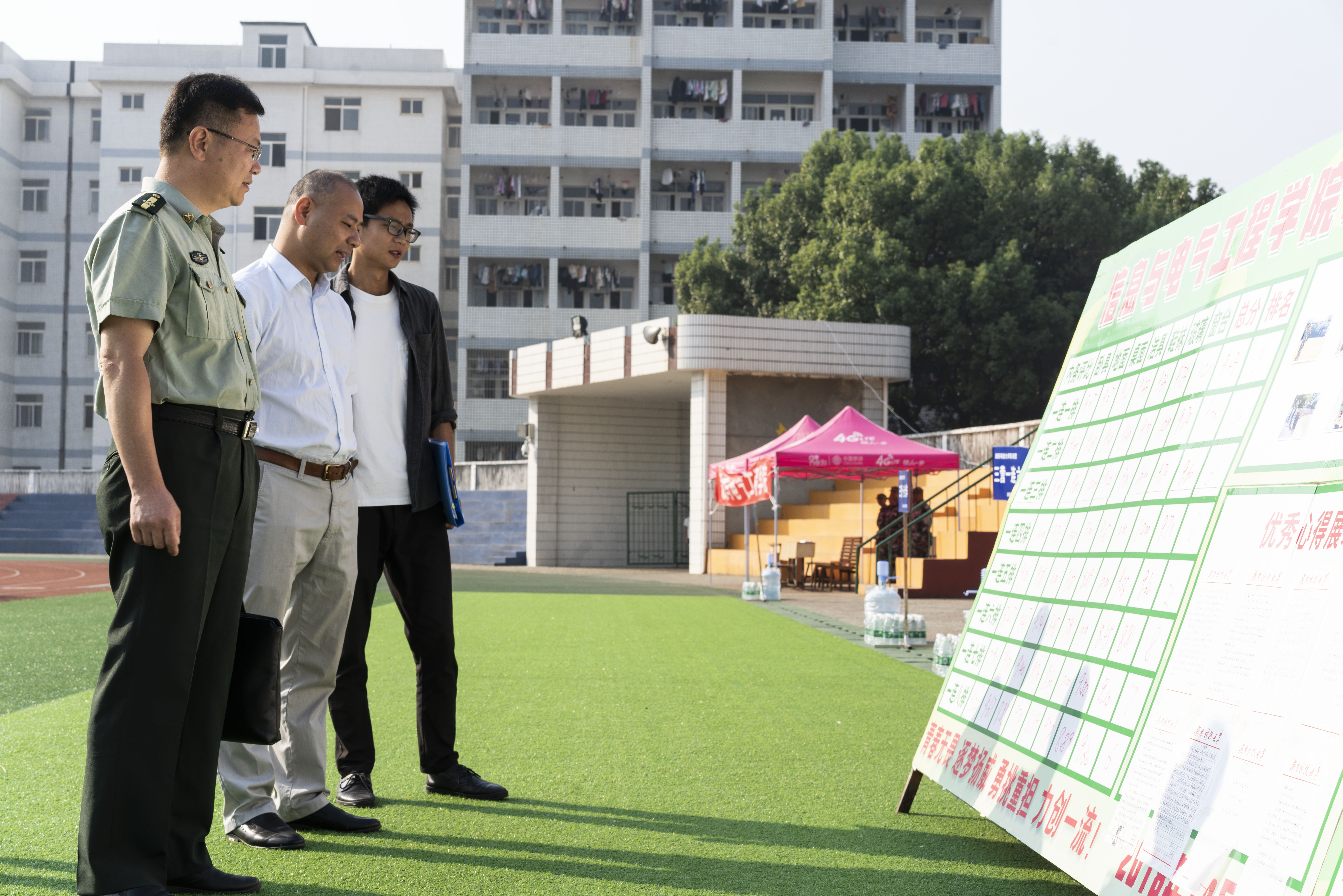 挥洒汗水,活力军训。10月7日上午8:30,信息与电气工程学院(以下简称信息学院)院长吴亮红莅临训练场指导观看2018级新生军训。信息学院党委副书记李宁及团委书记倪士根陪同院长吴亮红走进三营一连,近距离了解新生军训。