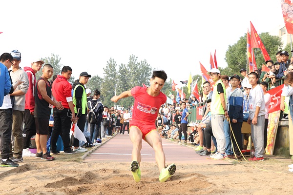 10月26日下午3:00,男子跳远比赛在我校第一田径场顺利举行。离比赛开始前一个小时,观众们就已经在观众席等候参赛选手的到来,鼓声咚咚作响,比赛来临了。随后,运动员陆续进场,观众们高声呐喊,举棒挥舞,向运动员们表达了对他们的热烈欢迎。