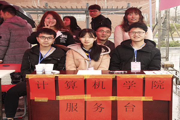 3月17日上午,湖南科技大学2018年春季校园招聘会在月湖广场举行。此次招聘会有来自省内外的445家用人单位来校招贤纳士,提供近两万个岗位,吸引了大批准毕业生前往求职。计算机科学与工程学院院党委副书记周筱芬、2014级辅导员曹睿卓、分管就业辅导员苏俊铭也到招聘会场同就业部负责人进行了交流,了解用人单位和计算机学院准毕业生的面试情况。同时计算机学院为了给到场应聘的毕业生提供便利服务,还专门设立了“计算机学院服务台”,帮助毕业生们更好地了解招聘信息。