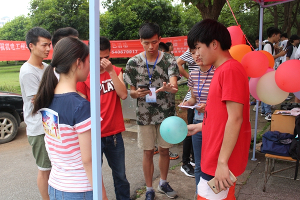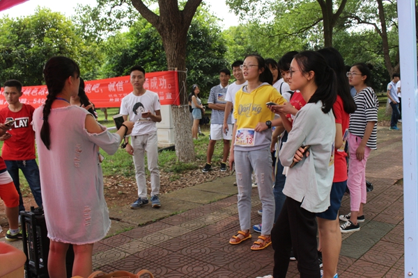 从“诚信气球保卫战”环节开始,几个小组开始了智慧与体力的较量。结束了气球保卫战的激烈对决后,所有小组又风风火火地赶往工科楼进行诚信知识抢答赛的智力比拼。队伍之间你追我赶,不甘落后,在答题环节中打得难分上下。随后很快进入了下一个游戏环节——收集诚信能量包,于是每个小组在去北田的路上,收集每个行人的诚信祝福语。最后来到北田,迎来此次活动的最后一个环节——斩杀不诚信恶霸,即每组抽取四个与不诚信相关的词语,分别由一位小组成员用英语、汉语释意,并肢体语言表演描述,小组其余成员负责猜词,许多表演者脑洞大开,巧妙利用场地工具,猜词队友完美配合,迅速猜出词语。