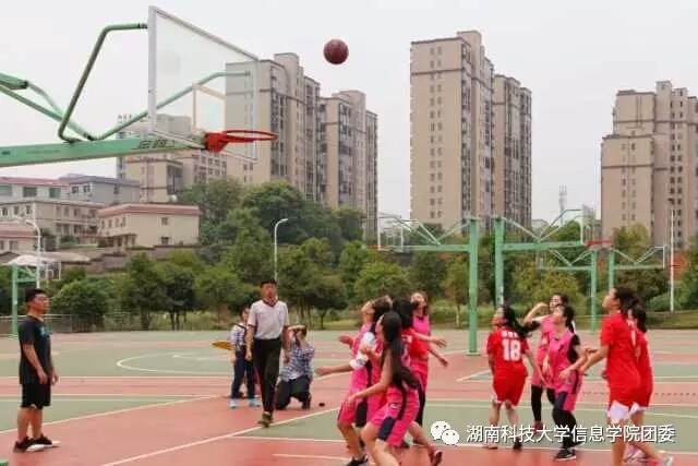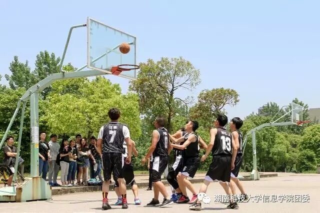 为升华各学院同学之间的友谊,5月2日至5月15日于北校篮球场、南校篮球场分别进行了信息与电气工程学院和土木工程学院、外国语学院、建筑与艺术学院、生命与科学学院、法学与公共管理学院、物理与电子科学学院、潇湘学院之间的“新青年”男子及女子篮球赛。