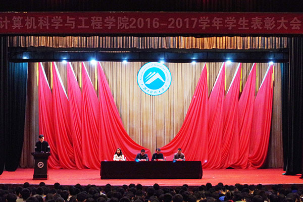 3月16日下午3点,计算机科学与工程学院于南校俱乐部隆重召开2016-2017学年学生表彰大会暨优秀校友报告会。计算机学院院长刘建勋,副院长周栋、胡勇华,院党委副书记周筱芬,学工办负责人陈苗苗,学工办兼职辅导员张政,06届优秀校友徐鲁出席会议,全院学生与会。大会由院团委书记王艺蓉主持。
