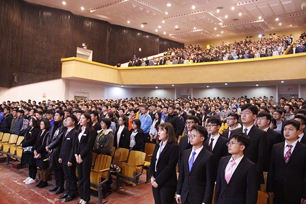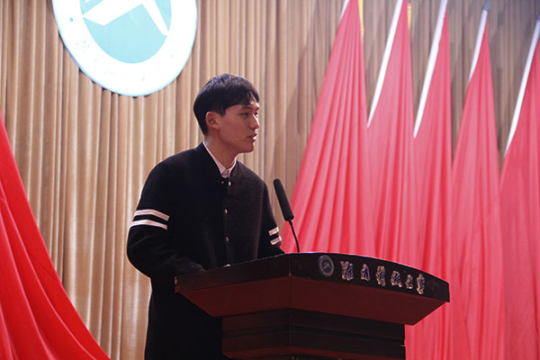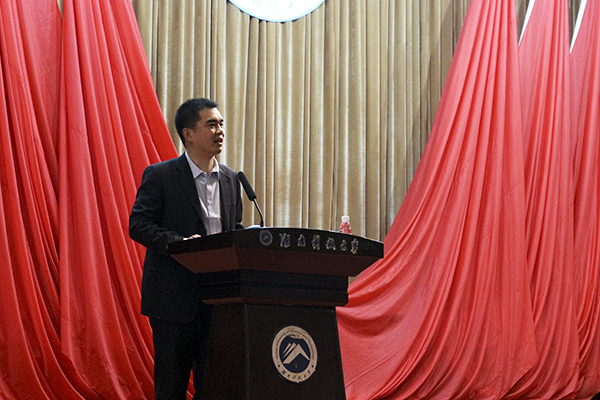 大会最后,优秀校友徐鲁上台发言。作为自主创业的成功代表,他主要从创新创业的角度给同学们进行经验分享,其中特别强调了校友的重要性,一个好的创业团队,需要好的合伙人,需要优秀的经理人,而学校就是这些资源的聚集地。徐鲁建议同学们与校友保持良好的关系,懂得珍惜学校及学院所带来的资源并努力回馈社会。“脚踏实地海让路;持之以恒山可移”是他给同学们的建议,更是他对同学们的期许。