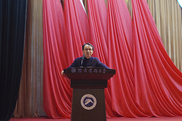 随后,刘建勋对集体及个人取得的成绩给予了充分的肯定和高度的赞扬,对呕心沥血、辛勤耕耘在教育第一线的老师们表示感谢。回顾计算机学院2016—2017学年科研学科建设、教学管理、学生工作等多个方面取得的成绩,刘建勋对同学们提出了四点要求:一是树立远大目标,矢志不渝,到达自己成功的彼岸;二是加强自身修养,积极参与到校园活动中去;三是刻苦学习,拥有一技之长;四是希望同学们增强自己的心理素质,在竞争大潮中立于不败之地。