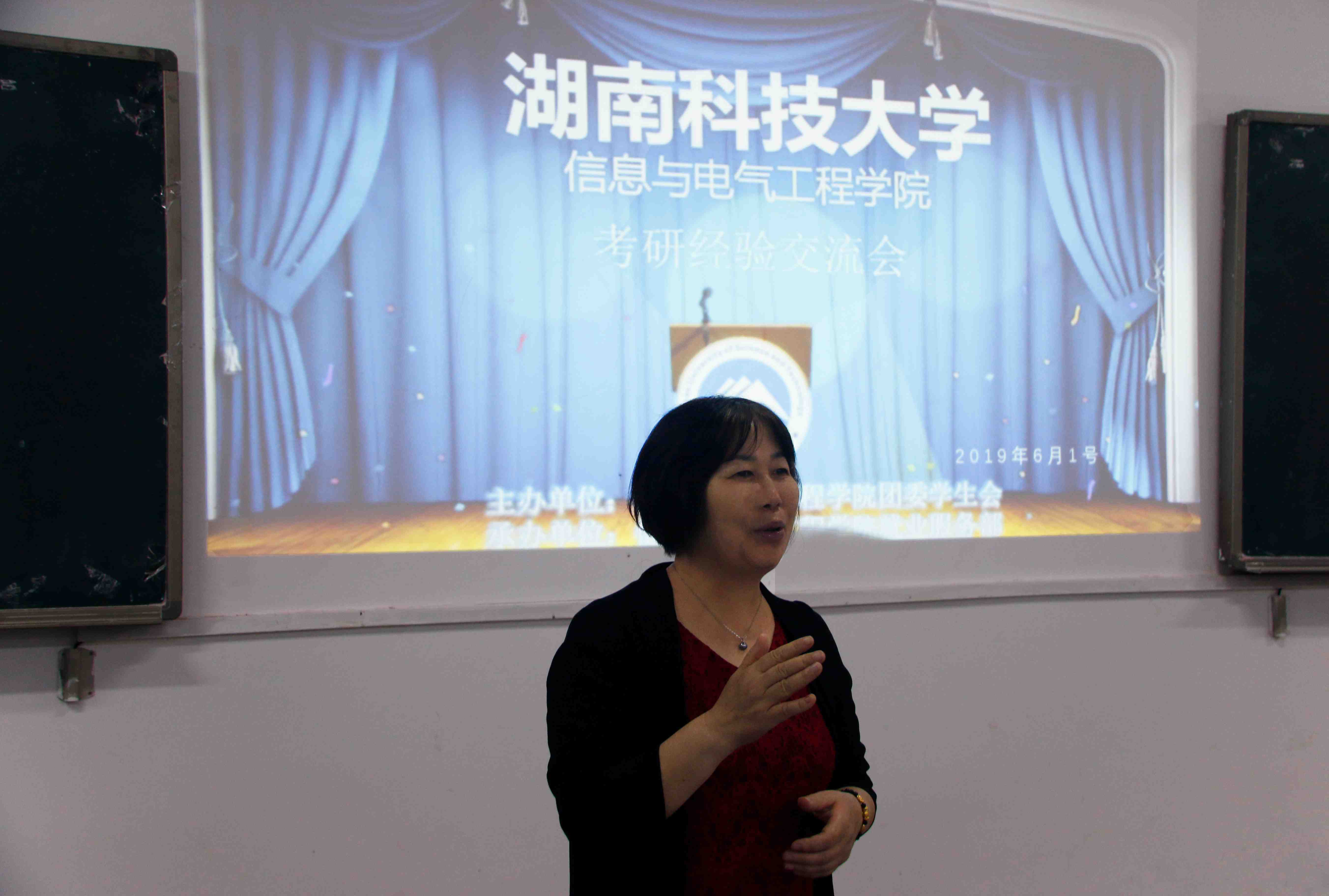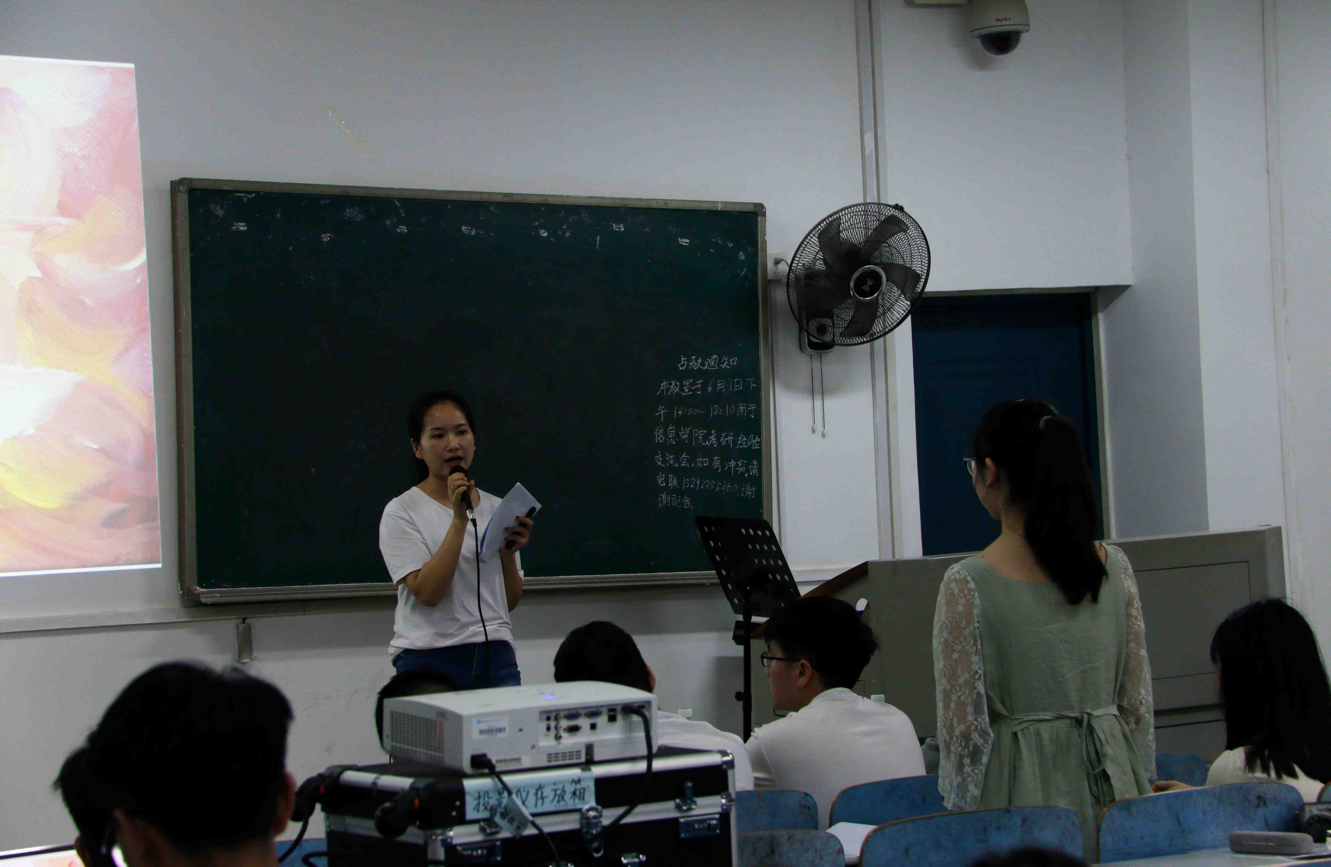 大会伊始,彭辉老师简要说明了信息学院近年的考研情况。她表示,“学院是考研学子坚强的后盾,希望参与考研的同学能互相勉励,也可以及时向学院老师或学长学姐寻求帮助。”最后,彭辉表达了对16级考研学生的美好祝愿,希望他们能考上自己满意的学校。