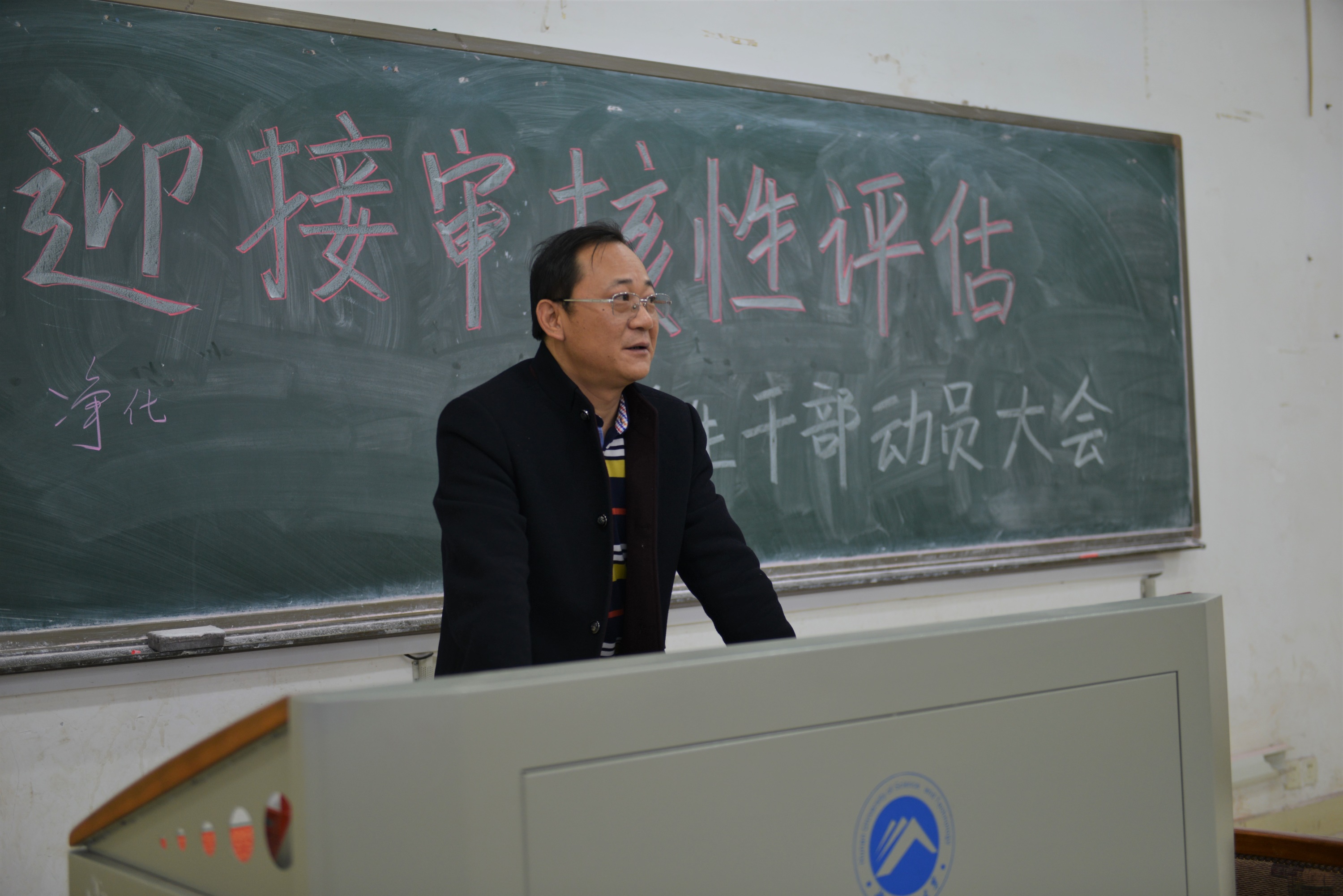 大会伊始,主持人孔祥一向大家介绍此次会议的主要内容为迎接审核性评估,同时汤建国老师就毕业生相关工作进行讲解。随后,易书记上台发言。他表示,教育部专家审核性评估是对高校人才培养目标及效果的一次督察与评价,是推动学校本科教学工作的一次重大发展机遇。随后,易书记对迎接审核性评估做了详细安排。此次审核将由17位专家通过实地考察走访和实时听课等方式进行,同时,他向学院老师及学生提出了六大要求:学习三个报告;强化教学秩序;创建文明宿舍;强化文明礼仪;重视安全问题;坚持迎评原则。