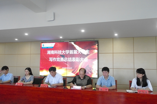 9月20日下午,人文与传播学院于文科楼B4-1举行了“湖南科技大学首届作文竞赛现场答辩暨表彰大会”,院长刘奇玉、教务处副处长罗建文、院党委副书记颜柯、副院长李胜清、副院长欧阳萍等领导出席。本次答辩会的评审团由教务处副处长夏莉、我院彭在钦教授、吴广平教授、李胜清教授、张学知副教授及刘郁琪博士、李卫华博士等担任。