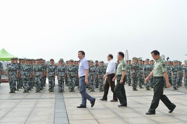 10月4日上午,"刻苦训练,壮我资安"整齐嘹亮的口号不断从南校图书馆前传出,资源环境与安全工程学院院长王海桥、院党委书记万文和院党委副书记廖巍到达军训场地对承训教官和参训新生表示亲切的慰问。