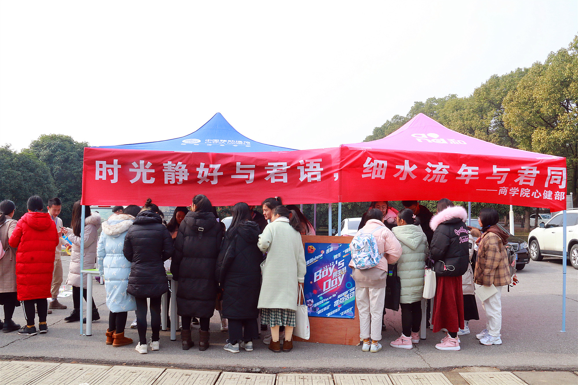 12月12日中午11:40至13:40,由湖南科技大学商学院心理健康教育服务部主办的第六届男生节摆点活动在南校美食广场举行。男生节由商学院首创,学院对此次活动给予高度重视和支持,旨在让男生在活动中缓解压力,表达对男性同胞的关怀,让他们感受学院的温馨与快乐,进一步丰富大学生的校园生活。