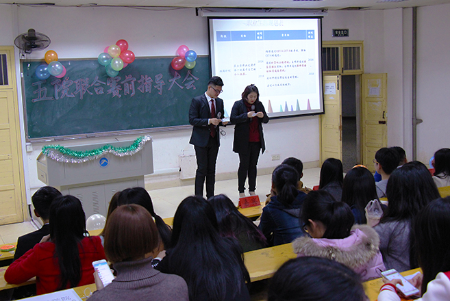 3月19日晚,职业规划大赛五院赛前指导大会于十教附一202隆重举行,本次大会围绕校级“职业规划大赛”作赛前预热,由物理与电子科学学院,生命科学学院,外国语学院,艺术学院,法学院联合举办。