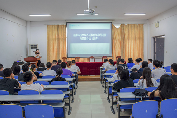 紧接着,陈苗苗对各位养成教育辅导员进行了心理健康教育知识的相关培训。培训过程中,陈苗苗首先对计算机科学与工程学院过去四年的心理健康情况作了一个简要的概述,她针对大学生的心理状况进行了详细的分析,并给出了相应的解决办法。而后,她又向大家讲述了心理健康与生活的联系,表明了心理健康在大学生活中的重要性。大会的最后,陈苗苗根据新生入学的安排向各位养成教育辅导员布置了相关工作,为此她强调了养成教育辅导员要着重留意新生入学时的心理状态,帮助他们尽快适应大学生活。同时她也相信只要各位养成教育辅导员齐心协力,积极配合,2019级的新生工作将会出色完成。