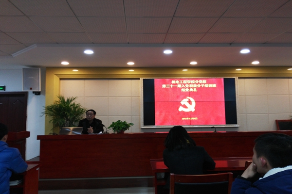 12月9日晚7:00,机电工程学院第三十一期入党积极分子培训班结业典礼在工科楼3-2举行。机电工程学院党委副书记郑海祥、学生党支部负责老师唐翠柳出席了此次结业典礼。本次结业典礼由院党建部培训部长陈佳骏主持。