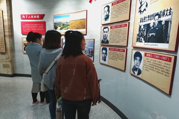在团支书陈雯芯的组织下同学们井然有序的来到纪念现场。到达现场后,有的同学走到英雄墙前细读墙上的名字,然后敬礼献花,有的在英雄纪念碑前手里握着献花深深的鞠躬表示祭拜悼念。同学们祭拜结束后来到了英雄陈列馆。在陈列馆中同学们看到一些记载和物品时重重的长叹一声,直呼佩服。走到毛泽东一家六烈士的记录墙前同学们停下了脚步,看到毛泽东与其夫人杨开慧的事迹时,有的同学细声说他们好伟大啊!有的同学也为这一家六位大英雄竖起了大拇指。
