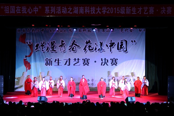 11月14日晚7点半,由共青团湖南科技大学委员会主办,校团委大学艺术团承办的“祖国在我心中”系列活动之15级新生才艺大赛决赛在南校俱乐部顺利举行。本次大会邀请了校团委副部长唐璟、校团委尹风雨、莫江平、田海望等领导担任评委。经过两个多月的初赛、复赛选拔,从20个学院脱颖而出的13个节目组成的视听盛宴呈现在师生眼前。