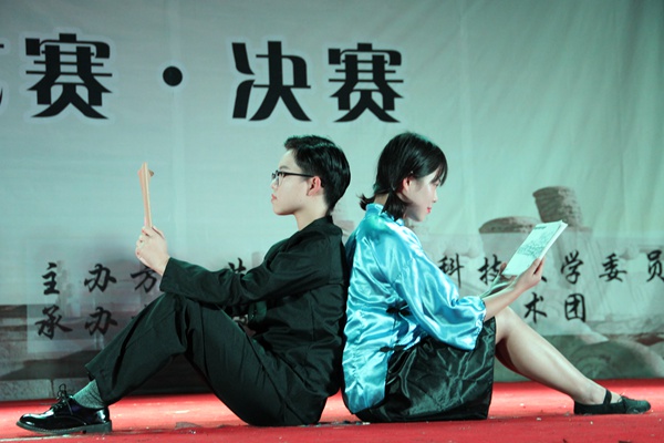 决赛以舞台剧,话剧居多,其中尤以爱国抗日话题为甚,化学化工学院的舞台剧《南京南京》挑起大梁,开场旁白将观众们带回到一段黑暗屈辱的近代抗日史,将中国人民遭受剥削压迫,而后奋起反抗的英勇事迹娓娓道来,剧中塑造人物形象鲜明,动作简练传神,用压抑、沉重的画面诠释着侵略者人性的扭曲,控诉了日本南京大屠杀的罪行,展示南京人民不屈不挠的品质和共同抗敌的英勇,唤起了观众的爱国情感。