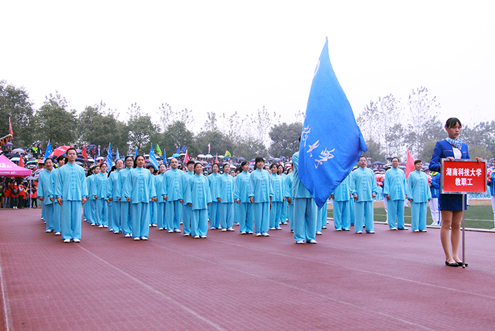 不仅如此,本届运动会更增添了许多特色演出,其中,我校数百名教职工为大家带来了一场别开生面的太极表演,体育学院的学生更是也用一场精彩的舞龙表演赢得了在场师生的热烈掌声。而接下来的老师们陆上龙舟赛、快乐传递等趣味赛也为此届运动会增添了许多亮点,再次点燃了赛场的高亢气氛。运动场上,每个参与者们都用自己的热情感染着现场的每一个人,即使是连绵的阴雨也无法阻隔观众心中的炙热。