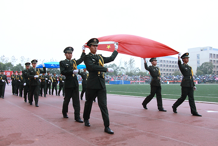 伴随着雄壮的运动员进行曲,校国旗班迈着整齐的步伐庄严的走过主席台,随后,彩旗队、教工代表队、裁判员代表队及各学院代表队依次进入会场,他们精神抖擞,意气风发,以最佳的精神状态阔步经过主席台接受院领导的检阅。其中,艺术学院代表队迈着整齐划一锵铿有力的步伐、以高亢嘹亮的口号向我们展现他们昂扬的精神风貌,更展现出了艺术学院学子蓬勃的朝气与活力,赢得了现场的一致赞许。