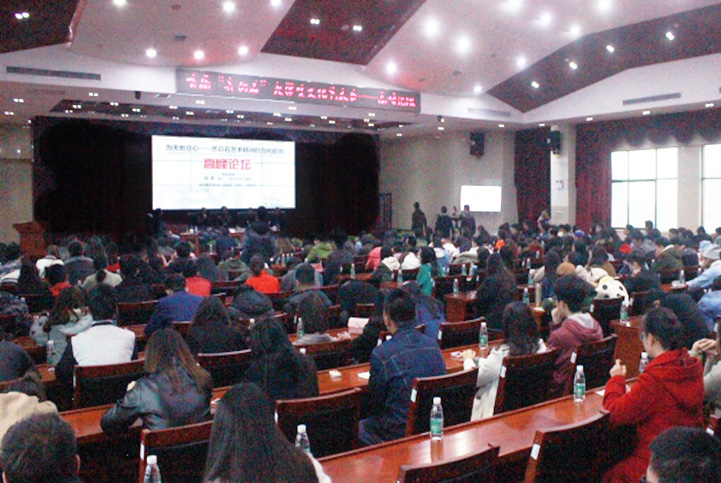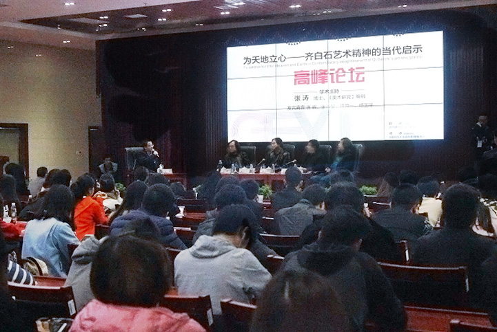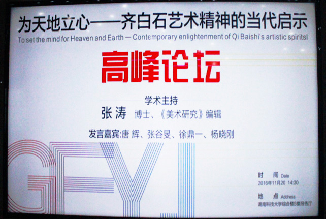 11月20日下午,我校首届“齐白石”大学生文化艺术节高峰论坛在综合楼5楼报告厅顺利召开。本次会议由中央美术学院博士、《美术研究》编辑张涛主持,唐辉、张谷旻、徐鼎一、杨国平及省内著名专家、学者出席会议并发表讲话。艺术学院师生积极到场参会。