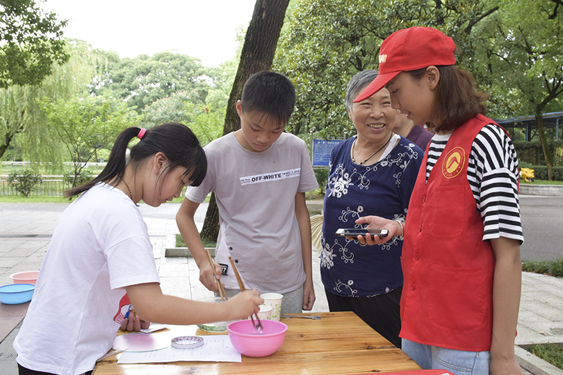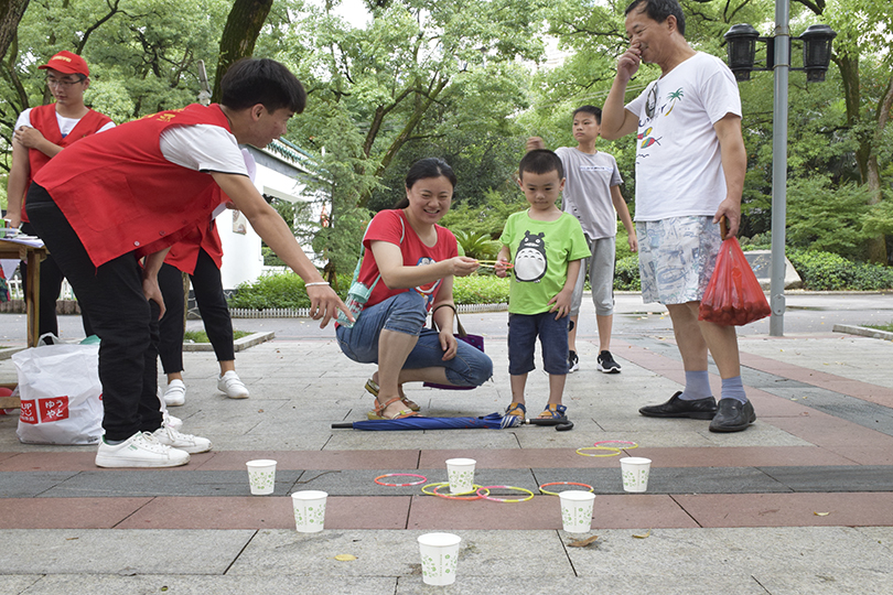 阴雨绵绵,浇不灭的是志愿者们的热情,下午4点,志愿者们在和平公园摆点开展亲子互动游戏,周围居民纷纷带领着孩子们参与到游戏中,对于游戏奖品而言,家长们感受更多的是与孩子们共同游戏收获快乐的过程。参与游戏的家长说道:“游戏都较为简单,可以与孩子共同参与,提高亲子间的联系,也减少了他花费在网络上的时间和对电子产品的依赖,希望他多去看看外面的世界。”