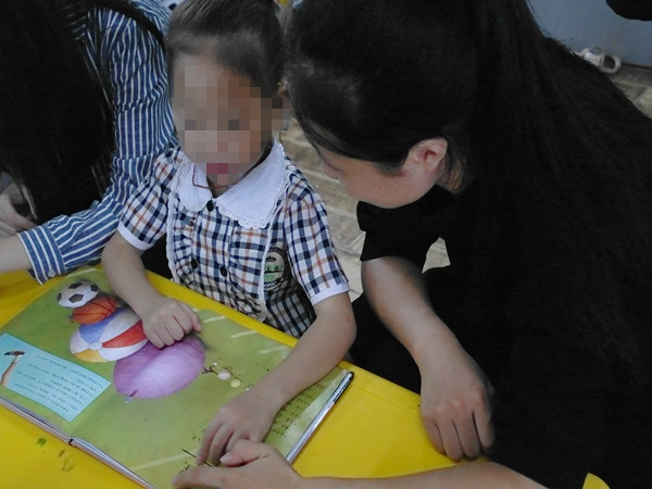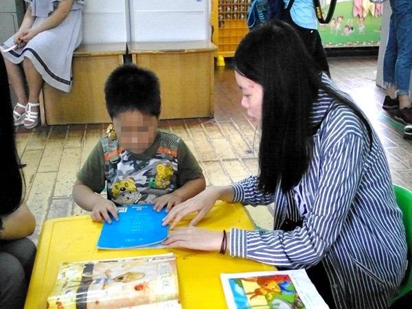 孩子的天性是好玩的,他们内心渴望与人一起玩乐。在特殊学校里他们并不是封闭自己,反而展现了极大的交流热情。当志愿者们走进教室,她们主动走上前去轻轻地拉起姐姐们的手,带她们来到自己的小天地,拿起自己喜欢的图册与志愿者一起分享?!罢馐歉鲂∨ⅲ掷锬昧艘槐臼椤币桓鲂∨笥阎缸攀掷锏耐疾嵘系耐级灾驹刚咚?,肥肥嫩嫩的小手配上灵动可爱的神情让人十分喜爱。