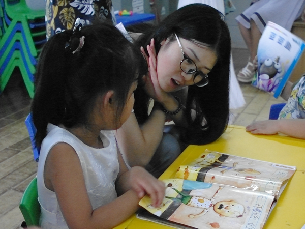 “来这里之前有点担心,怕小朋友认生,不愿意与我们交流?!?5级汉语言一班的肖立伟说。跟小朋友一起的时候,小朋友很有礼貌的为他挪一个位置,让他坐下,这让他内心很感动?!爸挥屑杆甓眩头浅S欣衩?,与她的相处能得到些与小朋友相处的经验,对我这个师范生来说受益非浅?!?br>