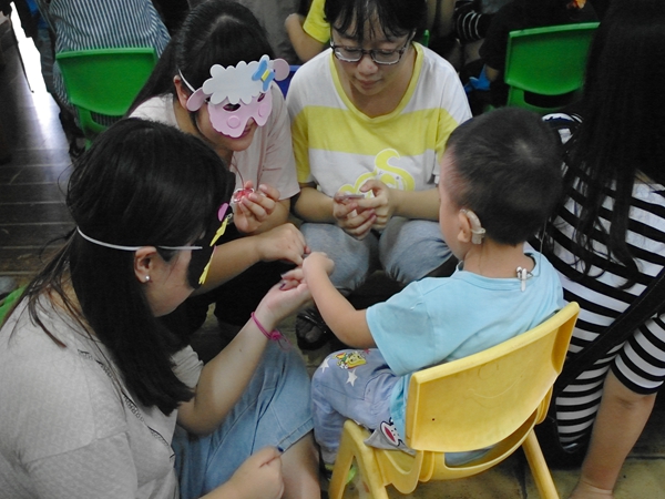 “我们……”“气球……”“高高兴兴……”,正值下午上课时分,教室内传出一声声稚嫩的读书声,和着轻轻的鼓励声,不绝于耳。9月27日,我院33名学生志愿者在钱子凡老师的带领下来到湘潭市特殊学??沟谒钠凇白呓厥庋!敝驹富疃舜位疃浴耙恢恍《锏男蜗笞呓愕氖澜纭蔽魈?,目的在于丰富小朋友的课堂生活,锻炼他们的发音、识别和交流沟通的能力。