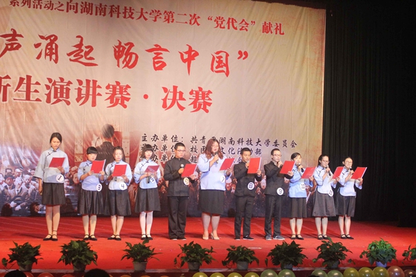 11月7日晚7:00,“祖国在我心中”系列主题活动之湖南科技大学新生演讲赛决赛在我校南校俱乐部举办。本次比赛由共青团湖南科技大学委员会主办,校团委文化活动部承办,共有11名选手参赛。