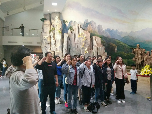 “我志愿加入中国共产党…”**纪念馆内,40多名预备党员在成伟明老师的带领下,不畏路人目光,高举右手,面对党旗庄严宣誓,铮铮誓词催人奋进。仪式结束后,全体人员在讲解员的引领和解说下,参观了“革命队伍中的红小鬼”、“人民军队杰出的政治工作者”、“激荡青春”、“锐意求真”、“公仆情怀”、“风范长存”共七个展厅。深切感受了耀邦同志从苏区“红小鬼”到党和国家领导人,从冲锋陷阵的革命战士到改革开放的开拓者这长达60年的革命足迹,追忆他为党和人民事业不懈奋斗的光辉历程。