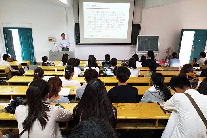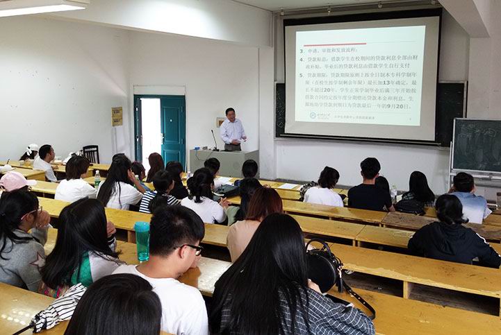 本次讲座中,黄朋老师细心为同学宣讲了资助政策和生源地贷款有关知识。包括绿色通道、国家助学贷款、贫困生认定及欠费缓交和国家各类奖学金等方面的知识。黄朋老师还对同学们说道:在家庭要理解父母、孝敬父母、感恩父母,在学校要做到“今天我以母校为荣,明天要让母校以我为荣”。教育同学们要感恩他人,诚信做人。