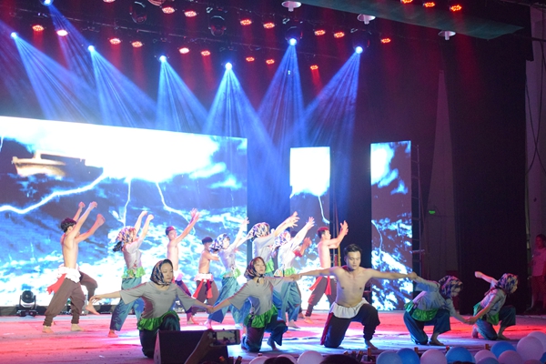 站在黄河之上,感受如黄河般气势磅礴的民族舞《奋进》,该舞极富民族特色,以波涛汹涌的大海为背景,以抑扬顿挫的鼓点为音乐,男舞者赤裸上身,女舞者矫健灵动,时而分散,时而集合,舞姿沉稳极富力量感,演绎出了水手在面对风暴时团结奋进的精神气概。在“巴黎”观众欣赏到的是学院及学部主席团成员为大家带来的合唱《光影巴黎》。鲜艳的红领巾,儿时的?;晟?,穿在他们身上毫无违和感,主席团别出心裁的采用交谊舞的形式演唱《告白气球》,将巴黎的浪漫表现得淋漓尽致,同时也为自己一年的学生会工作提交了一份满意的答卷。西藏。西藏是传统的,因而带给观众的是民乐《凉凉》?!傲沽挂股闼寄畛珊?化作春泥呵护着我/浅浅岁月拂满爱人袖/片片芳菲入水流”,一把古筝,一把琵琶,一个竖笛,配乐空灵柔美;一袭长袍,一身青衣,场景美轮美奂。