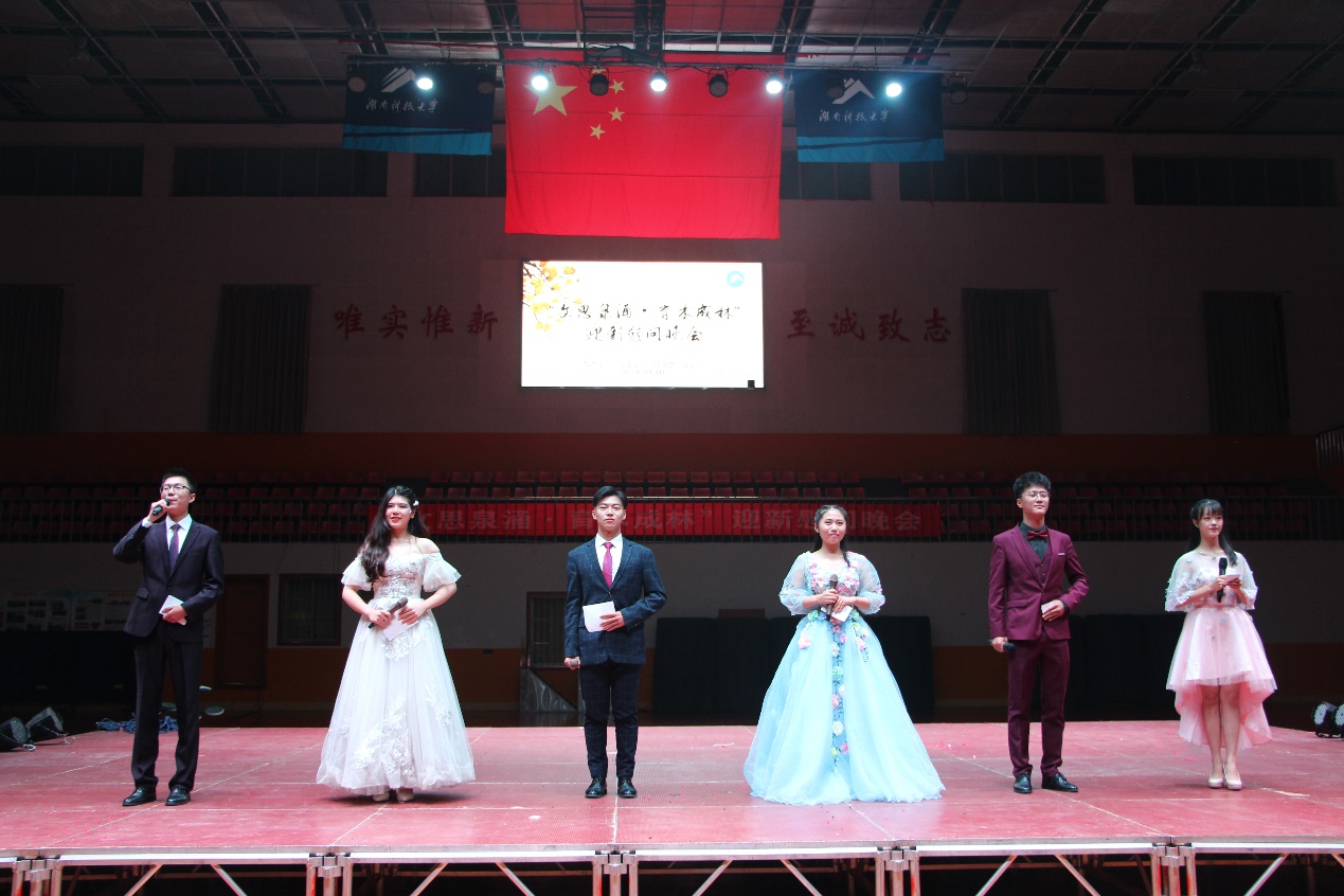 台上古风古韵,穿着汉服的演员正演唱歌曲,这是由马克思主义学院带来的声乐节目《惊鸿一面》,古风歌带有现代元素,旋律悦耳,画面唯美。接下来是由仁人乐曲艺社表演的相声《人工智能》。两位相声演员幽默诙谐的语言、丰富的面部表情以及灵滑稽的肢体动作,让在座的观众们捧腹大笑。湖科大吉他社奏唱了伍佰的《Last Dance》,温柔的声线拨动着观众的心弦,台下一片闪光灯点点摇曳宛若星河,场面十分浪漫。