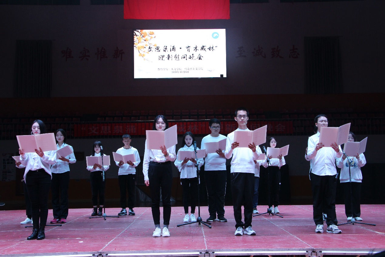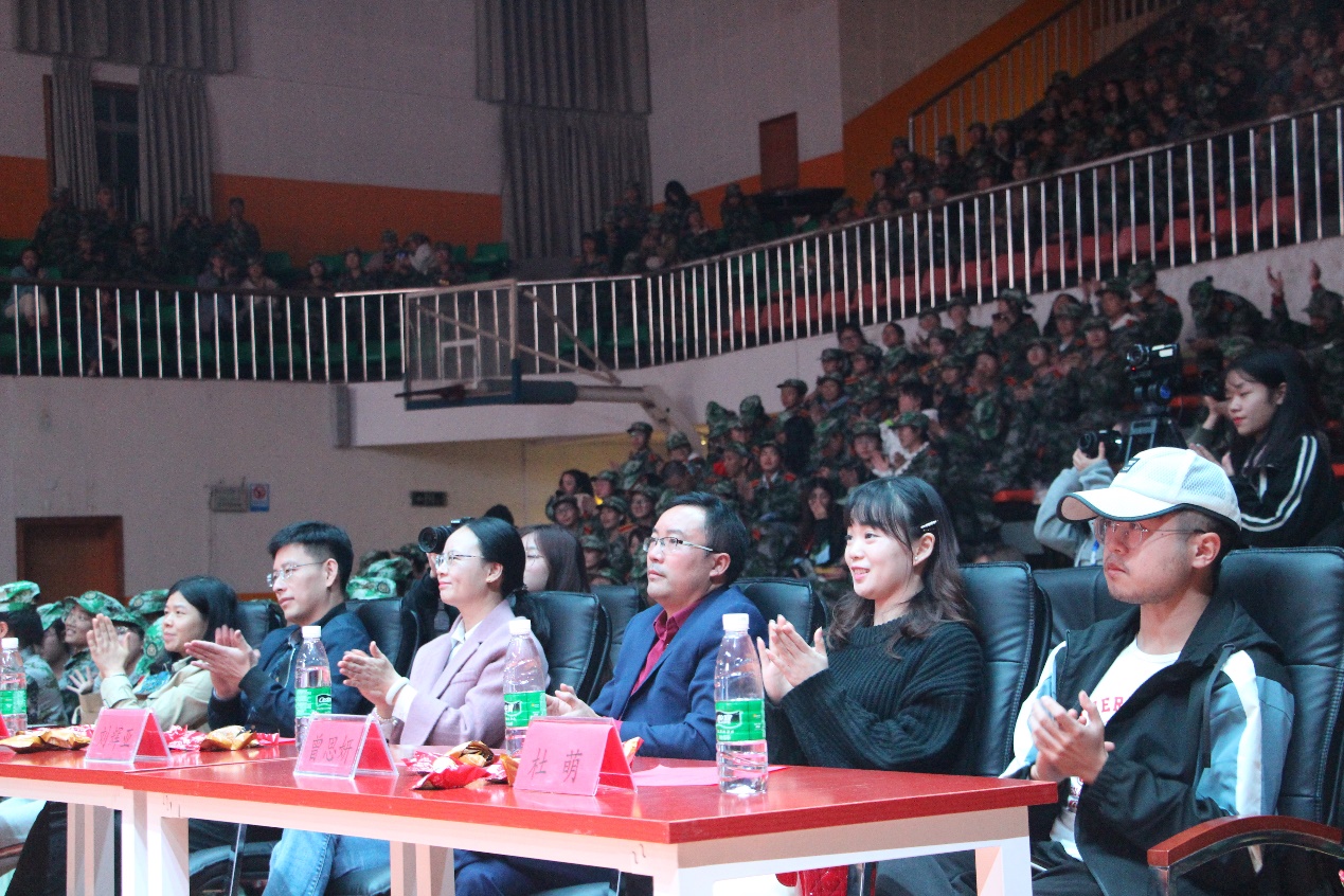 10月8日晚,北校体育馆人声鼎沸,座无虚席。由人文学院、马克思主义学院以及教育学院联合举办的“文思泉涌,育木成林”军训慰问演出于北校体育馆举行。马克思主义学院党委副书记莫江平、教育学院党委副书记刘辉亚,马克思主义学院学工办主任刘哲,人文学院新生辅导员曾思妍、杜萌,教育学院新生辅导员李涛,各学院学生会主席团代表及全体教官、全体新生到场观看。演出由王禹博、刘颖、孙继展、杨青、邵昱棋、张一帆主持。