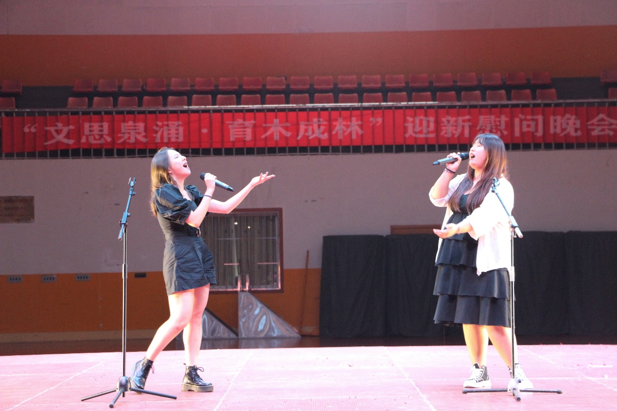 在多彩的霓虹灯光下,人文学院带来了开场舞《我们赢了》。舞台上戴着口罩的演员们踩着节拍,用有力的舞姿演绎共同抗疫,无声的语言引发了在场观众的共情。音乐渐渐减弱,节目看似即将结束,骤然响起爵士乐,无风转变。演员们褪去外套,跳起了热情奔放的爵士舞,动感的音乐顿时点燃了全场气氛。“我们大概是从9月13号开始排练舞蹈的,很开心为新生们表演节目!”19级汉语言文学4班喻如颜说道,她是其中一位演员。
