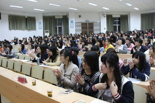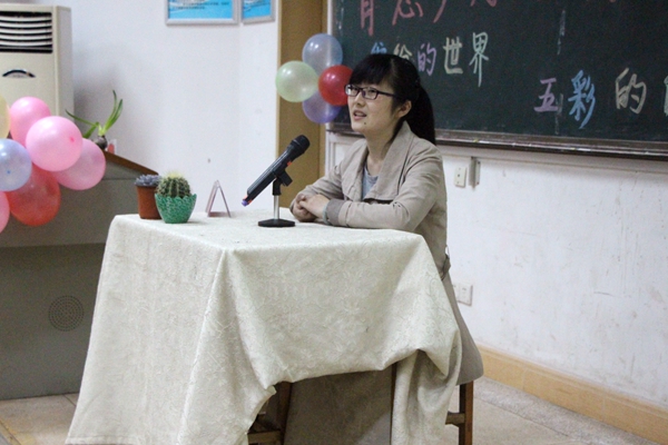 此次讲座主要以关注女性身心健康为主。开讲之前,承办此次活动的女生部已将现场布置得极具温馨的氛围。五彩的气球,绚丽的海报,夺目的横幅都让此次参加讲座的女生们甚是惊喜。一场别具匠心的“击鼓传花”小游戏瞬间将全场的气氛推向高潮,紧张的音乐和女生们的欢呼声在教室里此起彼伏,随着最后一个音节的停止,拿到花球的女生成为幸运观众,获得机会,回答关于女性生活小常识的问题来赢得丰厚奖品。欢声过后,女生部合唱了一首——《心愿》唱出了春天的美好,也唱出了女生们心中的小情节。