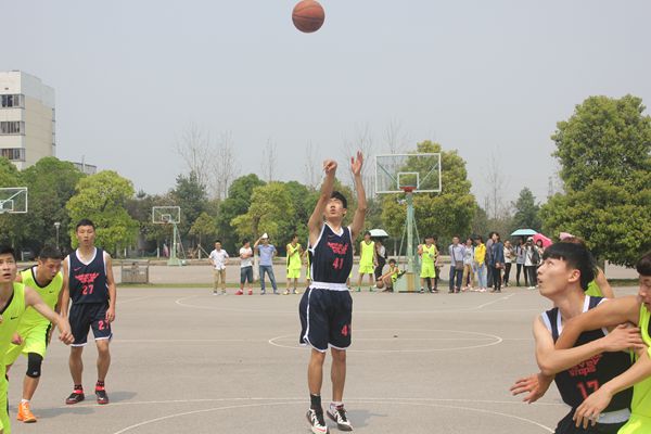 只听我院篮球队队长在场下不断指导、提醒场上队员:“篮板!篮板!把球传出去!回防!回防!”啦啦队和场下观众也充满激情,每一次完美的配合,每一次球落入蓝中,都伴随着阵阵尖叫和掌声。