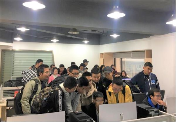 而后,南方测绘分公司负责人又为大家解说了测绘先进技术与无人机摄影测量生产的相关知识。同学们热情高涨,将几个演示场地围得水泄不通。在工作人员的一步步演示下,同学们初步了解了无人机摄影测量4D产品的生产制作流程和激光点云数据三维重建技术。活动的最后,所有人来到公司的楼下合影留念,就此为此次的认知实习画下了圆满的句号。
