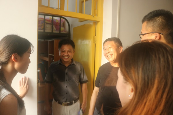 截止至9月9日下午5:00,资安学院新生已基本到齐,资安学院院长王海桥,党委书记万文,院党委副书记廖巍,刘韧、张杰老师及部分学生干部于9日下午5:00一同下寝看望新生。