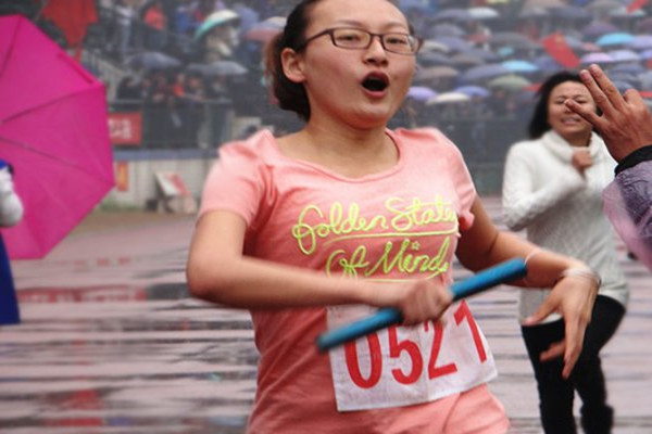 “太棒啦!”观众席上连连喝彩,有的同学还站起来用力挥舞着手中的彩旗庆祝这胜利时刻。看到结果,团队队员聚在一起十分激动,“琳姐,今天都靠你啦!”闻言,龚雪琳只是笑笑,很快平复呼吸,换好衣服。“其实之前我们也都没有联系过,比赛是第一次配合,能有这样的成绩真是意外之喜”,龚雪琳除了团体接力,还参加了其他比赛,获得不俗成绩。